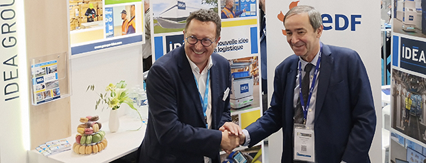 | EDF a retenu IDEA, spécialiste de solutions logistiques sur mesure, pour concevoir et opérer l’ensemble de la chaîne logistique d’approvisionnement et de transport des équipements nécessaires à la construction des six réacteurs nucléaires EPR2, la nouvelle génération des EPR. Ce contrat positionne IDEA comme « ensemblier logistique » d’un chantier industriel hors norme, inscrit dans la stratégie de l’État français visant à renforcer la production d’électricité bas carbone et à garantir la souveraineté énergétique du pays. Pour IDEA, ce contrat concrétise la stratégie de diversification déployée dans le cadre de son plan stratégique 2020-2025. La prestation confiée à IDEA, structurée en 4 volets principaux (logistique opérationnelle, immobilier, IT et référencement des matériels) permettra d’industrialiser la logistique d’approvisionnement des 6 EPR2 tout en renforçant sa fiabilité et en optimisant délais, coûts, sécurité et flux de transport. «Ce partenariat d’envergure, inscrit dans notre plan stratégique 2020-2025, confirme la pertinence de notre stratégie de diversification et reconnaît notre savoir-faire logistique sur des programmes industriels complexes et de long terme. Il illustre pleinement notre engagement à soutenir la transition énergétique et à contribuer à la souveraineté industrielle française », déclare Isabelle Petit, Responsable Grands Comptes chez IDEA. JPG Photo : M. Derouault, PDG du groupe IDEA et M. Fontana, PDG du groupe EDF - Salon WNE 2025 (World Nuclear Exhibition) ©IDEA |