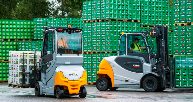 Des chariots dotés de la technologie lithium-ion sur le site Heineken de Weiden |