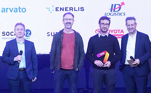 | 9. Le « Prix Spécial » qui dépasse par sa dimension toutes les catégories, a été remis à Windcoop par Olivier Barge, directeur général de Quartus Logistique et par Cyrille Guichard, directeur général pour la France de Toyota Automated Logistic. |