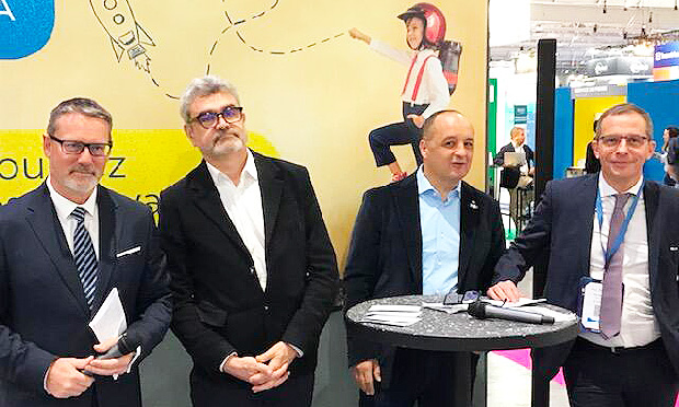 | En avril 2025, DSV officialisait l’acquisition de Schenker, donnant naissance à un acteur mondial de premier plan dans le transport et la logistique. Un an après le début de l’intégration, l’organisation DSV en France est désormais opérationnelle à commencer par ses activités aériennes, maritimes et logistique. Ce rapprochement stratégique permet d’offrir aux chargeurs un réseau de proximité renforcé s’appuyant sur la complémentarité des expertises et des savoir-faire des deux entités. Lors du salon SITL les deux entreprises ont commenté ces évolutions majeures sur le stand de Sprint Project en présence de (de gauche à droite sur la photo) : Fabien ESNOULT, fondateur de SprintProject, Eric BELLISSENT, Managing Director DSV AIR & SEA - Cyril BARBE, Managing Director DSV Contract Logistics et François MALLASSAGNE, Managing Director DSV ROAD. JPG |