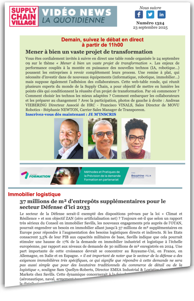 Le secteur de la Défense serait-il exempté des dispositions prévues par la loi « Climat et Résilience » et son objectif ZAN (zéro artificialisation net) ? Toujours est-il que selon un rapport très sérieux du Conseil en immobilier Savills, les nouveaux engagements pris auprès de l’OTAN, pourrait engendrer un besoin en immobilier allant jusqu’à 37 millions de m² supplémentaires en Europe pour répondre à l’augmentation des besoins logistiques directs et indirects. Si les Etats consacrent 3,5% de leur PIB aux capacités militaires de base, Savills indique que cela pourrait stimuler une hausse de 17% de la demande en immobilier industriel et logistique à l’échelle européenne, par rapport aux niveaux de demande de 30 millions de m² enregistrés en 2024. Une part importante de cette croissance devrait se concentrer au Royaume-Uni, en France, en Allemagne, en Italie et en Espagne. « il est important de noter que le secteur de la défense a des exigences immobilières très spécifiques, ce qui signifie que répondre à cette demande ne sera pas aussi simple que pour des locataires traditionnels du commerce de détail ou de la logistique », souligne Sam Quellyn-Roberts, Director EMEA Industrial & Logistics Occupational Markets chez Savills. Cette dynamique concernerait à la fois des sites de production spécialisés (aéronautique, naval, armement terrestre), des plateformes logistiques destinées au stockage et à la distribution de matériel, ainsi que des infrastructures de soutien pour l’OTAN. JPG