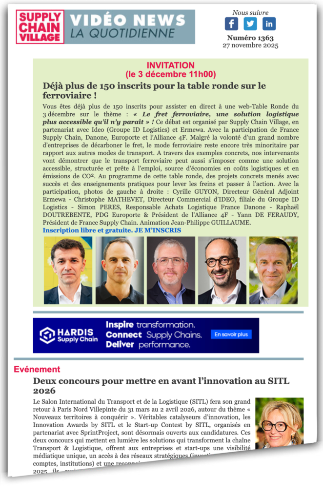 « Depuis maintenant 8 ans, SprintProject accompagne avec conviction le Start-up Contest by SITL et les Innovation Awards by SITL. Cette ouverture à l’ensemble de l’écosystème de l’innovation reflète notre mission : identifier, analyser et valoriser les solutions qui façonnent l’avenir de cette belle filière, pour une Supply Chain plus efficace, résiliente et durable à échelle internationale », précise pour sa part Fabien Esnoult, CEO de SprintProject. JPG