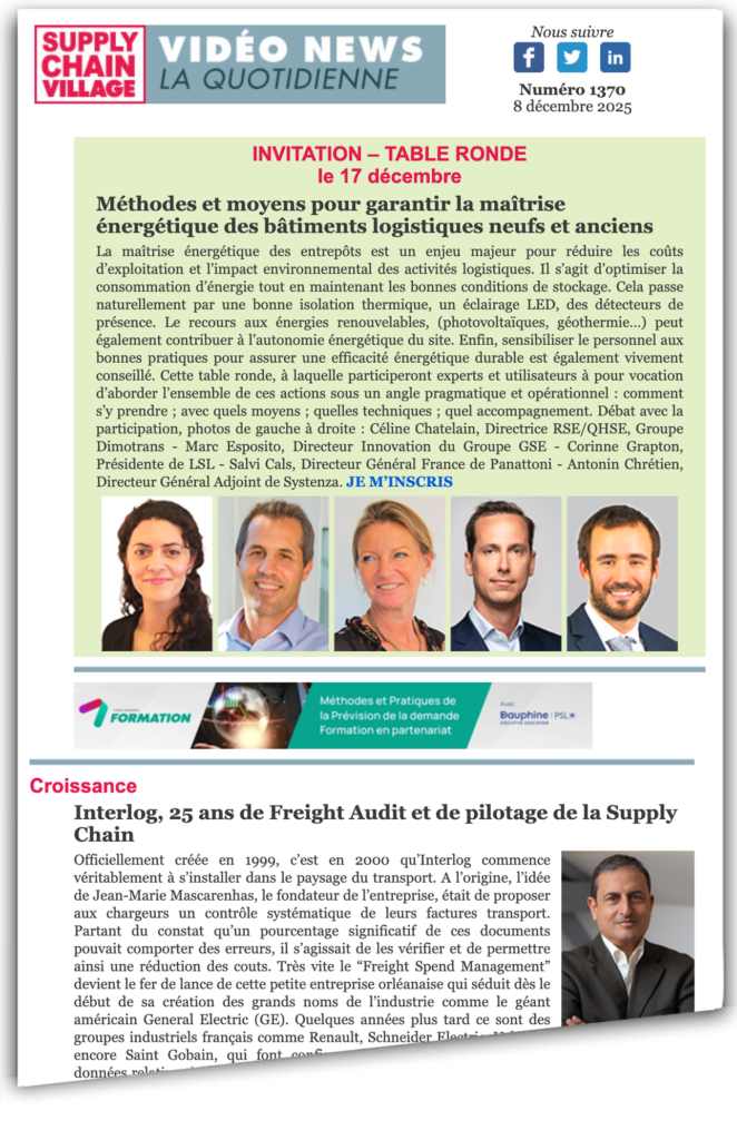 Officiellement créée en 1999, c’est en 2000 qu’Interlog commence véritablement à s’installer dans le paysage du transport. A l’origine, l’idée de Jean-Marie Mascarenhas, le fondateur de l’entreprise, était de proposer aux chargeurs un contrôle systématique de leurs factures transport. Partant du constat qu’un pourcentage significatif de ces documents pouvait comporter des erreurs, il s’agissait de les vérifier et de permettre ainsi une réduction des couts. Très vite le « Freight Spend Management » devient le fer de lance de cette petite entreprise orléanaise qui séduit dès le début de sa création des grands noms de l’industrie comme le géant américain General Electric (GE). Quelques années plus tard ce sont des groupes industriels français comme Renault, Schneider Electric, Valéo ou encore Saint Gobain, qui font confiance à Interlog pour l’étude des données relatives à leur transport de marchandises. Forte de ses premiers succès, l’entreprise ouvre en 2003 un bureau en Inde. Puis en 2007 elle s’installe au Mexique et créé en 2010 un bureau aux Etats-Unis. L’expertise de l’entreprise en matière d’audit s’enrichit, ce qui la conduit à développer des outils d’analyse de données et de « Business Intelligence » (BI) pour proposer un véritable service de gestion des coûts transport. En 2015 elle s’implante au Portugal et lance la même année « Interlog Logistic ». Dès lors, elle entend se positionner comme un pilote de flux (4PL) avec une approche globale qui intègre l’analyse, le conseil, le développement informatique (plateformes collaboratives, système de gestion des expéditions, appros, TMS, ’hébergement informatique et sécurité des données. « Notre objectif est de rendre l’information simple, intuitive et facile à utiliser avec ses solutions complètes », aime à rappeler Jean-Marie Mascarenhas. En 2018 Interlog se renforce en Asie avec un nouveau bureau en Inde et un autre en Chine (Shanghai). Le dirigeant explique cette expansion comme une réponse aux besoins de ses clients internationaux : « Notre proposition de valeur associe des services très complémentaires. Elle fait d’Interlog un partenaire de confiance pour toutes les entreprises industrielles qui souhaitent accroître leur efficacité et leurs bénéfices en nous confiant la gestion opérationnelle et financière de leurs flux de transports ». Après un quart de siècle d’existence, l’entreprise emploie désormais plus de 280 personnes. Loin de considérer ce succès comme un aboutissement, l’entreprise entend poursuivre son développement en capitalisant sur son niveau d’expertise, sa technologie de pointe, mais aussi sur la confiance exprimée depuis 25 ans par les plus grands noms du monde industriel. JPG