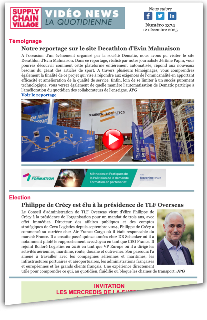 Le Conseil d’administration de TLF Overseas vient d’élire Philippe de Crécy à la présidence de l’organisation pour un mandat de trois ans, avec effet immédiat. Directeur des affaires publiques et des comptes stratégiques de Ceva Logistics depuis septembre 2024, Philippe de Crécy a commencé sa carrière chez Air France Cargo où il était responsable du marché France. Il a ensuite passé quinze années chez DB Schenker où il a notamment piloté le rapprochement avec Joyau en tant que CEO France. Il rejoint Bolloré Logistics en 2016 en tant que VP Europe où il a dirigé les activités aériennes, maritime, route, douane et outre-mer. Son parcours l’a amené à travailler avec les compagnies aériennes et maritimes, les infrastructures portuaires et aéroportuaires, les administrations françaises et européennes et les grands clients français. Une expérience directement utile pour comprendre ce qui, au quotidien, fluidifie ou bloque les chaînes de transport. JPG