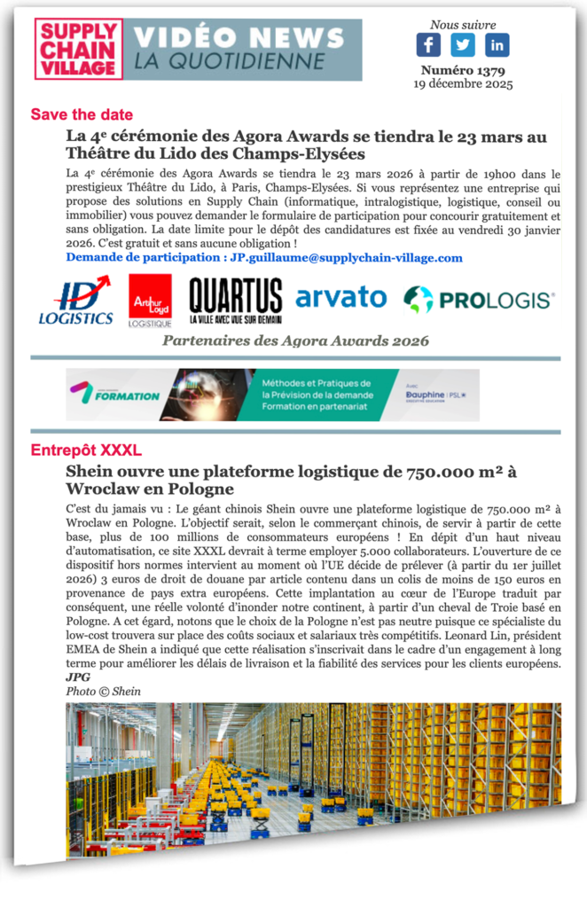 C’est du jamais vu : Le géant chinois Shein ouvre une plateforme logistique de 750.000 m² à Wroclaw en Pologne. L’objectif serait, selon le commerçant chinois, de servir à partirde cette base, plus de 100 millions de consommateurs européens! En dépit d’un haut niveau d’automatisation, ce site XXXL devrait à terme employer 5.000 collaborateurs. L’ouverture de ce dispositif hors normes intervient au moment où l’UE décide de prélever (à partir du 1er juillet 2026) 3 euros de droit de douane par article contenu dans un colis de moins de 150 euros en provenance de pays extra européens. Cette implantation au cœur de l’Europe traduit par conséquent, une réelle volonté d’inonder notre continent, à partir d’un cheval de Troie basé en Pologne. A cet égard, notons que le choix de la Pologne n’est pas neutre puisque ce spécialiste du low-cost trouvera sur place des coûts sociaux et salariaux très compétitifs. Leonard Lin, président EMEA de Shein a indiqué que cette réalisation s’inscrivait dans le cadre d’un engagement à long terme pour améliorer les délais de livraison et la fiabilité des services pour les clients européens. JPG
