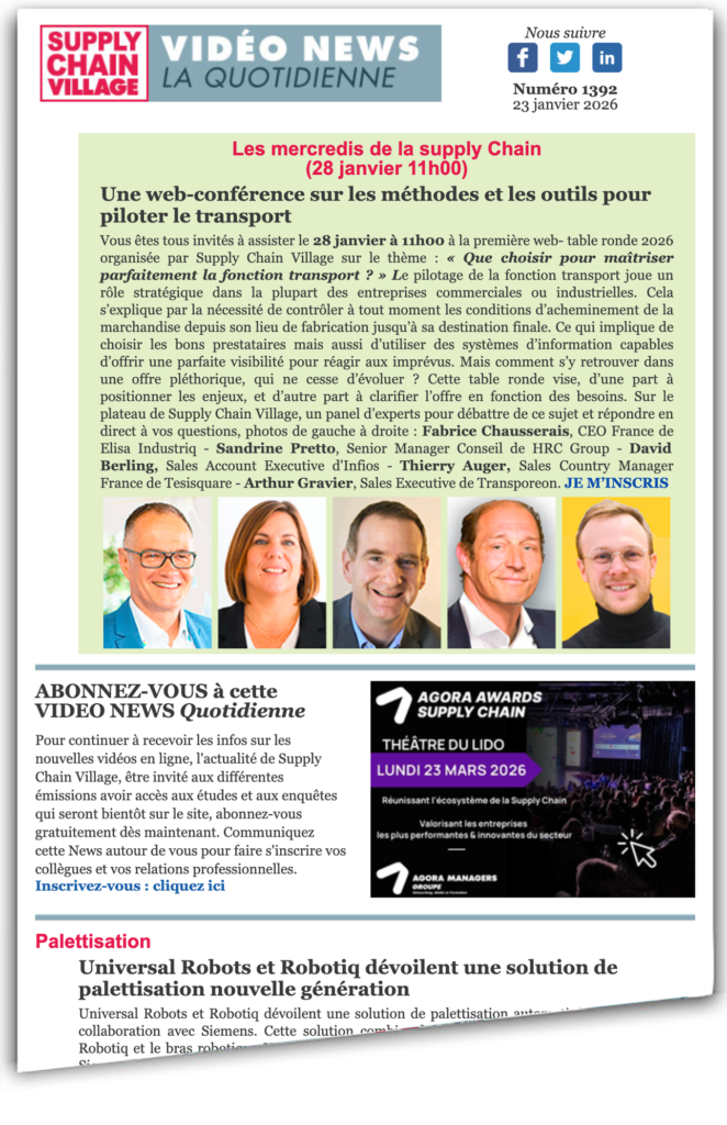 Universal Robots et Robotiq dévoilent une solution de palettisation automatisée développée en collaboration avec Siemens. Cette solution combine la cellule de palettisation PAL Ready de Robotiq et le bras robotique UR20 d’Universal Robots, intégré au matériel d’automatisation de Siemens et à son nouveau logiciel Digital Twin Composer. Le palettiseur s’appuie sur l’analyse des jumeaux numériques pour optimiser de manière dynamique les performances des pinces et les points d’aspiration. Grâce aux données capturées à l’aide du matériel de Siemens, puis transmises à son Insights Hub Copilot, des informations en temps réel sont fournies sur le comportement des cellules. Elles sont ensuite présentées dans un environnement photoréaliste en temps réel, créé à l’aide du nouveau logiciel Digital Twin Composer. « Cette collaboration avec Universal Robots et Siemens est la preuve que la palettisation Lean, lorsqu’elle est associée à une technologie de jumeaux numériques de pointe, peut aider les entreprises à gagner en efficacité et à s’adapter rapidement à l’évolution des demandes », commente Samuel Bouchard, PDG de Robotiq. JPG