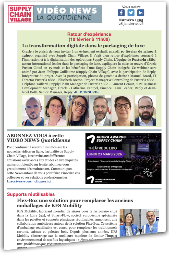 KFS Mobility, fabricant mondial de sièges pour le ferroviaire situé dans la Loire (42), et Smart-Flow, société européenne spécialisée dans les palettes et supports plastiques réutilisables, annoncent une collaboration ambitieuse autour de la solution Flex-Box. Ce système d’emballage réutilisable est conçu pour remplacer les traditionnels cartons, caisses et palettes bois. Depuis plusieurs années, KFS Mobility s’interroge sur la meilleure manière de limiter l’impact environnemental de ses flux logistiques : « Nous étions confrontés à une problématique récurrente : nos emballages jetables pesaient autant sur notre organisation que sur notre empreinte environnementale. Le Flex-Box de Smart-Flow s’est révélé être la réponse idéale, alliant robustesse, modularité et durabilité. », explique Gwenaëlle Bonnin, Acheteur série / Projets RSE chez KFS Mobility. Après plusieurs mois de tests concluants menés sur les flux entre la France, le Portugal et l’Italie, KFS Mobility a généralisé l’usage des box-palettes réutilisables de Smart-Flow. Avec ce système, les opérateurs peuvent récupérer plus facilement les pièces à l’intérieur, y compris au fond de la caisse-palette, sans avoir à découper ou manipuler des cartons fragiles. Les pièces sensibles, comme les coques peintes ou les structures métalliques, sont protégées efficacement des chocs et des frottements. Pour assurer un suivi rigoureux, des étiquettes code-barres sont placées sur les deux côtés des palettes, permettant de scanner les caisses à chaque étape : réception, stockage et livraison. Ce dispositif de traçabilité offre à KFS une visibilité inédite sur ses flux logistiques. « Le marquage et la traçabilité étaient pour nous des conditions essentielles. Chaque Flex-Box doit pouvoir être identifié et suivi en temps réel. Cela garantit non seulement un meilleur contrôle, mais aussi une réduction des risques de pertes ou de mauvaises manipulations », précise Gwenaëlle Bonnin. A noter que chaque unité est composée d’une palette SF 800 Pool, de trois réhausses gerbées et d’une qui recouvre l’ensemble, soit un volume global de stockage de 873 litres. Ce système modulaire permet d’adapter la hauteur des caisses en fonction du volume transporté, tout en garantissant la sécurité des pièces stockées à l’intérieur. JPG