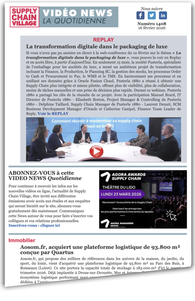 Aosom.fr, qui propose des milliers de références dans les univers de la maison, du jardin, du sport, du loisir, vient d’acquérir une plateforme logistique de 93.800 m² au Parc des Buis, à Boisseaux (Loiret). Ce site portera la capacité totale de stockage à 183.000 m² d’ici le premier trimestre 2026. Déjà implantée à Droue-sur-Drouette, Mer et Artenay, l’entreprise consolide un écosystème logistique performant pour accompagner la montée en puissance de ses marques dédiées à l’aménagement de la maison (HOMCOM), du plein air (Outsunny) et de l’animalerie (Pawhut). En 2025, Aosom.fr a traité plus de 2 millions de commandes. Cette nouvelle plateforme permettra d’augmenter les capacités opérationnelles de 93%, un levier décisif pour gérer les pics d’activité, raccourcir les délais de livraison et élever les standards d’exécution. Situé à proximité immédiate des grands axes routiers et doté d’une connectivité multimodale rare, le site de Boisseaux permet d’optimiser les flux nationaux et de répondre aux attentes croissantes des consommateurs, réduisant le risque d’abandon de panier, qui peut atteindre près de 70% lorsque les délais ou frais de livraison ne correspondent pas aux attentes. Conçu par Quartus Logistique, le bâtiment de Boisseaux se compose de quinze espaces adaptables et évolutifs et est prévu pour obtenir la certification Breeam Excellent, soulignant l’engagement d’Aosom France en matière de logistique plus responsable. L’utilisation de matériaux recyclés, des systèmes constructifs bois béton et une insertion paysagère soignée démontrent que performance opérationnelle et durabilité peuvent aller de pair. « Avec cet entrepôt, nous doublons notre capacité de stockage pour répondre aux besoins croissants de nos clients et optimiser nos opérations logistiques. La rapidité et la fiabilité de livraison sont désormais des leviers stratégiques de croissance, » déclare Emmanuel Benichou, Directeur Général d’Aosom France. « Cette plateforme illustre parfaitement notre expertise pour répondre aux besoins d’un marché exigeant et en pleine mutation, » souligne Emmanuel Launiau, Président de Quartus Logistique. « Nous sommes fiers d’avoir accompagné Aosom France dans cette opération d’envergure, qui confirme sa trajectoire et renforce son rôle dans l’écosystème logistique français, » commente pour sa part, Jean-François Mounic, Directeur Général d’EOL. JPG