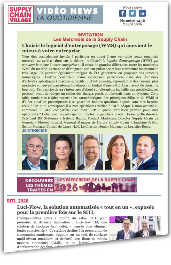 L’équipementier Fives a profité du salon SITL pour présenter sa dernière innovation : Luci-Flow™, une solution de stockage haut débit, « pensée pour éliminer toutes complexités ». Ce système destiné à la préparation de commandes omnicanale, s’appuie sur un rack de stockage multi-niveau modulaire et évolutif, une flotte de robots mobiles autonomes (AMR), et un logiciel centralisé d’orchestration des flux. Selon l’équipementier sa principale qualité serait de simplifier les opérations logistiques tout en augmentant la capacité, le débit et la fluidité : « En réunissant stockage, préparation et séquencement dans un système unique, Luci-Flow™ vise une exploitation plus fluide, plus prévisible et évolutive, adaptée aux exigences actuelles et futures des entrepôts omnicanaux », indique Frédéric Zielinski, CEO de Fives Intralogistics SAS. En fait, la solution repose sur un principe de stockage direct des charges, qu’il s’agisse de cartons fournisseurs, de bacs plastiques ou d’autres formats standards. Les colis sont pris en charge par les AMR dès les stations de réception ou de préparation, puis stockés automatiquement dans des racks en hauteur. Cette approche supprime les étapes intermédiaires telles que le dépotage ou le transfert vers des contenants spécifiques. Le système intègre nativement la mise en attente des commandes, leur tri et leur séquencement. Un seul ensemble technologique assure le stockage, le buffer et la préparation, sans recourir à des équipements périphériques comme des trieurs ou des buffers externes. « La complexité des flux est absorbée par l’architecture et le pilotage logiciel, permettant aux opérateurs de se concentrer sur des tâches à valeur ajoutée. Les robots accèdent aux racks par les escalators et non directement par roulage sur la structure de stockage, ce qui limite les exigences de préparation du sol et évite des travaux de surfaçage lourds et coûteux », précise pour sa part Rémy Fargier, Directeur Exécutif de Fives Xcella. Les stations de préparation et d’expédition peuvent être positionnées librement autour du système de stockage, selon l’organisation logistique retenue. La solution s’intègre aussi bien avec un WMS existant qu’avec les outils logiciels de Fives. La conception prévoit des mécanismes de redondance, notamment au niveau de l’accès aux zones de stockage. La navigation des AMR ne nécessite ni infrastructure spécifique au sol ni dispositifs de guidage, ce qui facilite l’évolution du système. JPG